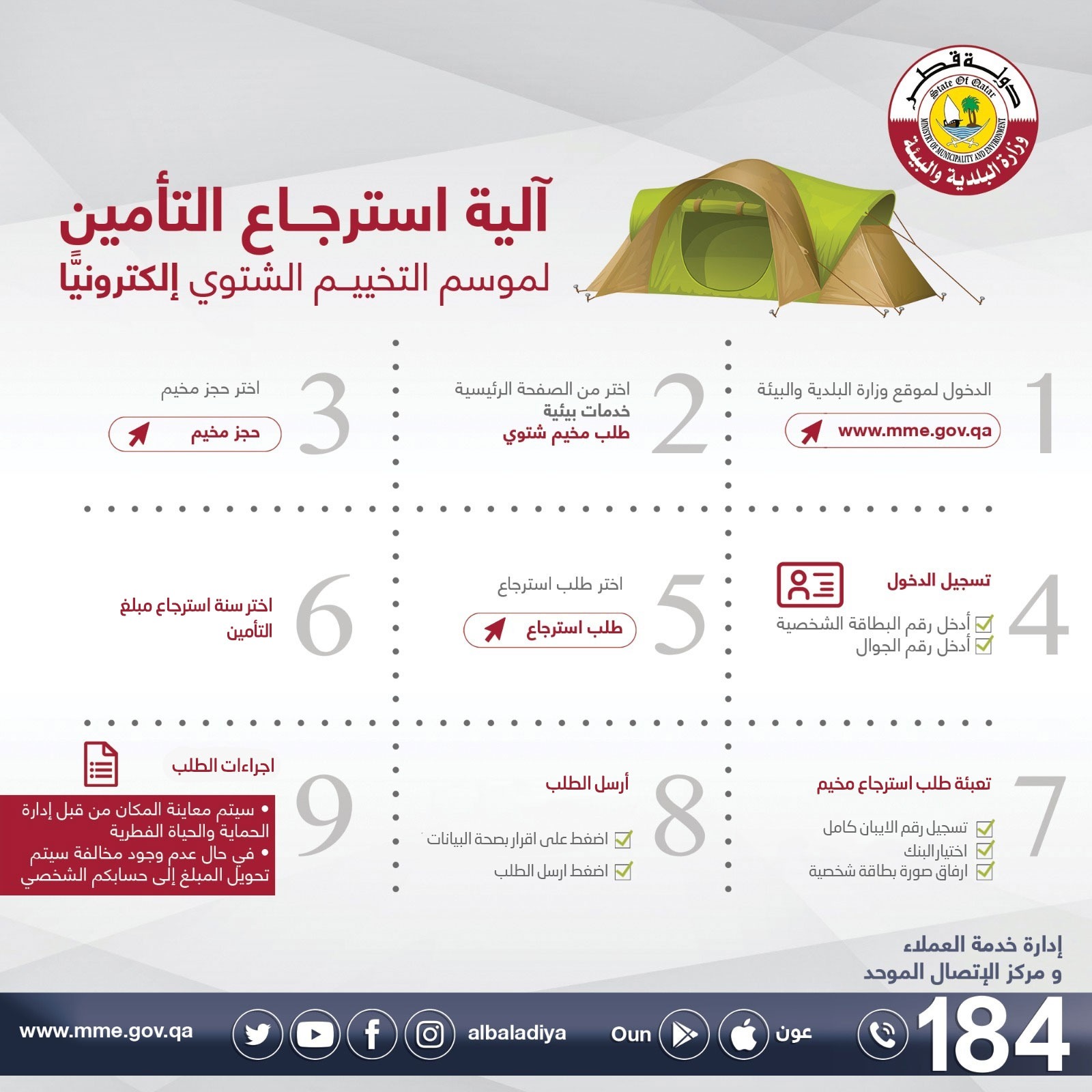 وزارة البلدية والبيئة Mme Su Twitter تسهيل ا لاجراءات استرجاع مبلغ التامين للتخييم تم الاستغناء عن إرفاق شهادة الأيبان البنكي كما تم اختصار الخطوات بالدخول على نظام التخييم واختيار طلب الاسترجاع ثم