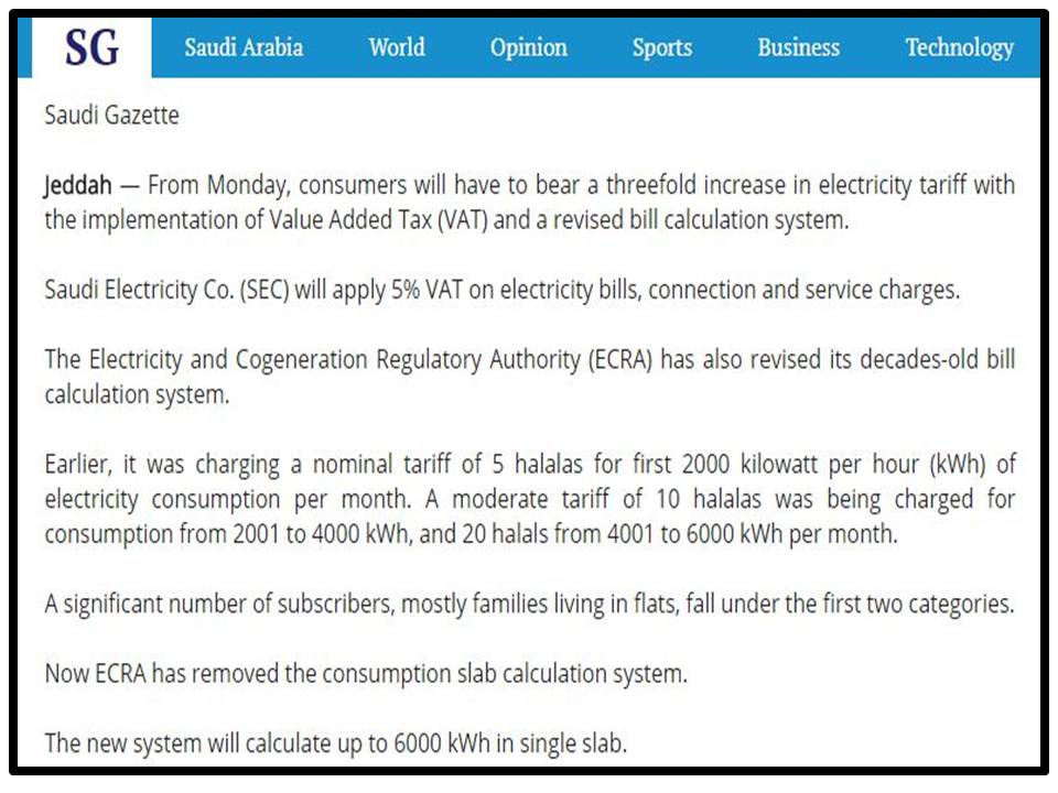 Electricity Tariffs To Be Revised From Jan 1 Saudi Gazette